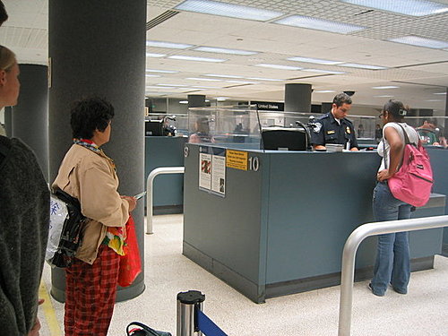 我笑一笑,向她解釋旁邊是持美國護照,這邊才是旅客的隊伍,