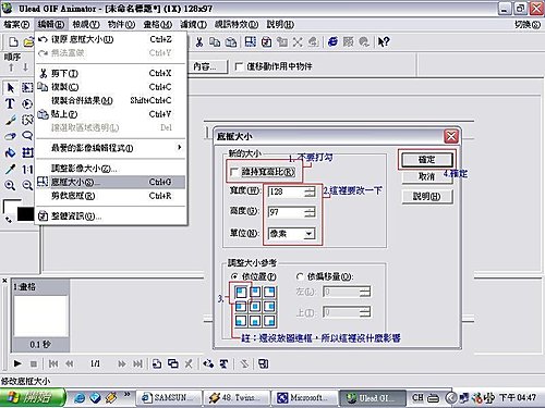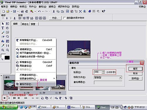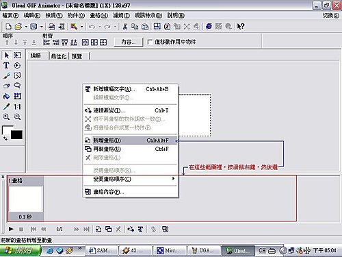 第六步:調整畫格變換的速度。先將所有畫格反白,然後按滑鼠右鍵,"畫格內容"