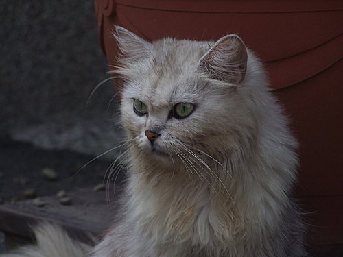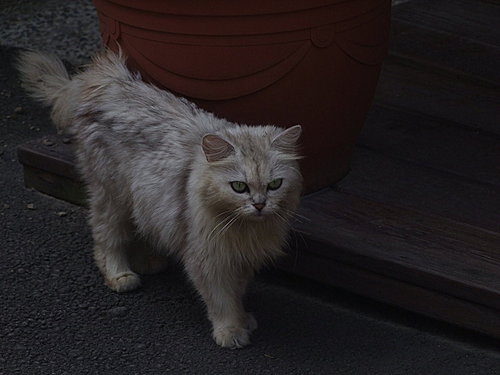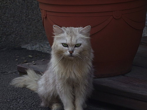 園內有一隻貓朝我走來,好像是波斯貓