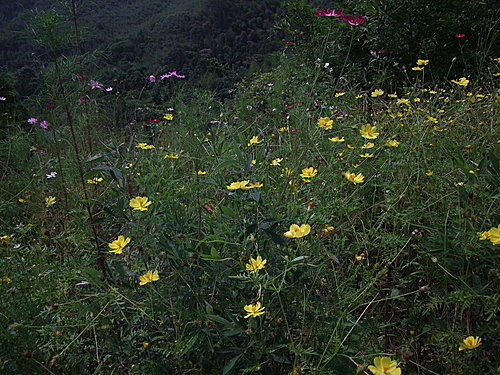 只好延途拍拍花朵,這是在一家荒廢的遊樂中心門口拍的,好像是金針花