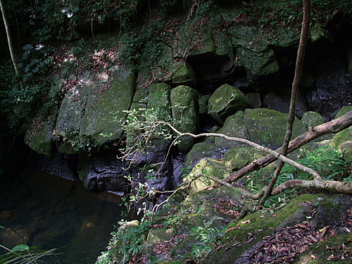 跟兩個路人一起去找鴛鴦瀑布,結果走錯路,走很陡翹的小路,看到佈滿青苔的岩石,隨手拍